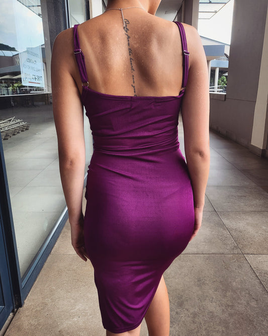 Aubergine cowl midi dress