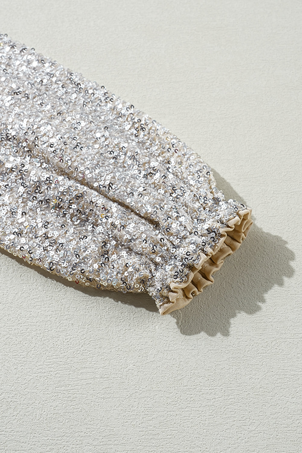 - Puff sleeves adorned with sequins add volume and sparkle.