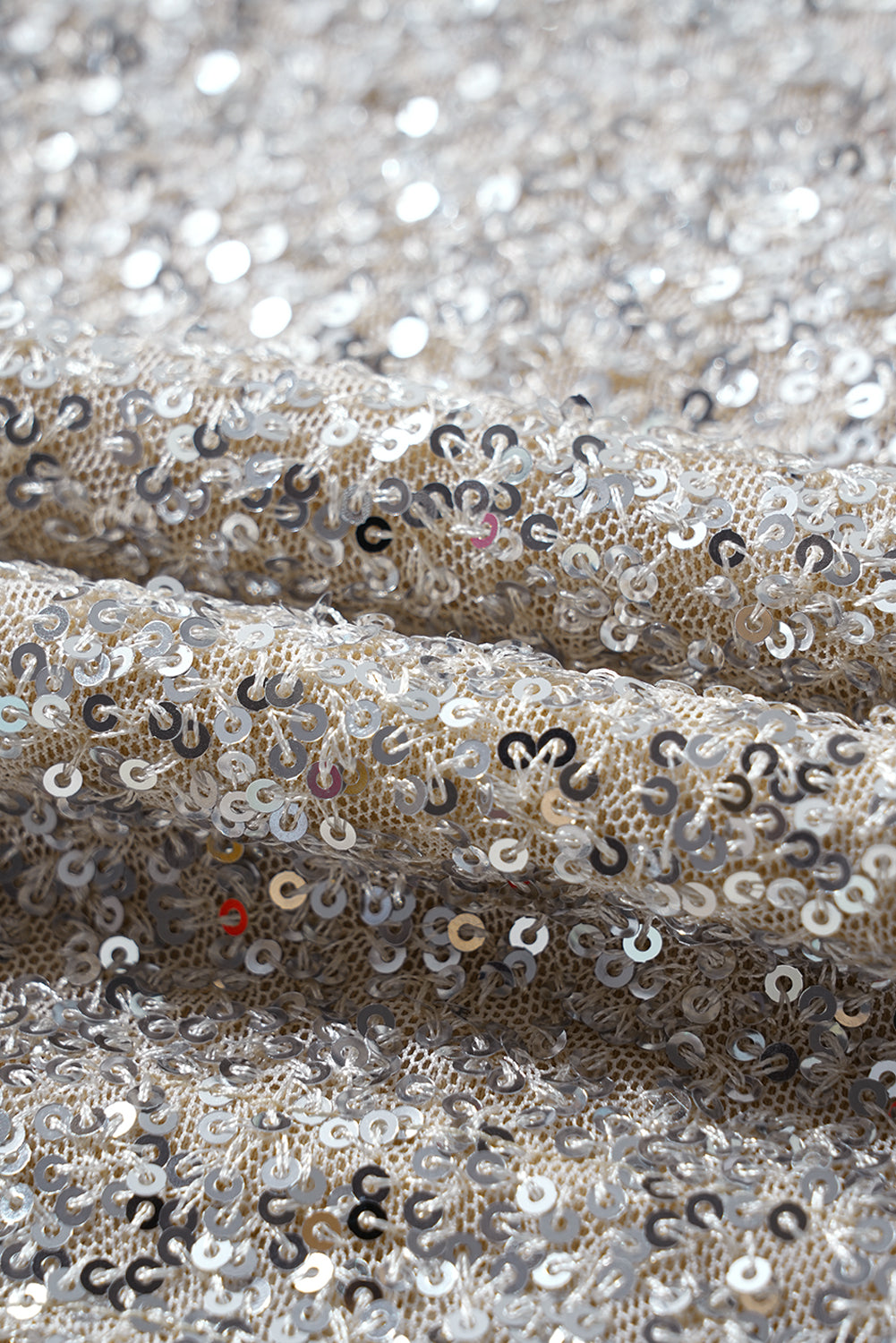 - Silver sequins nude open back blouse.
